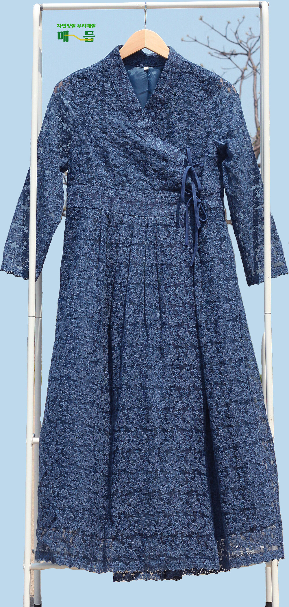 [천연염색] 파랑파랑 철릭 원피스 (55~99)