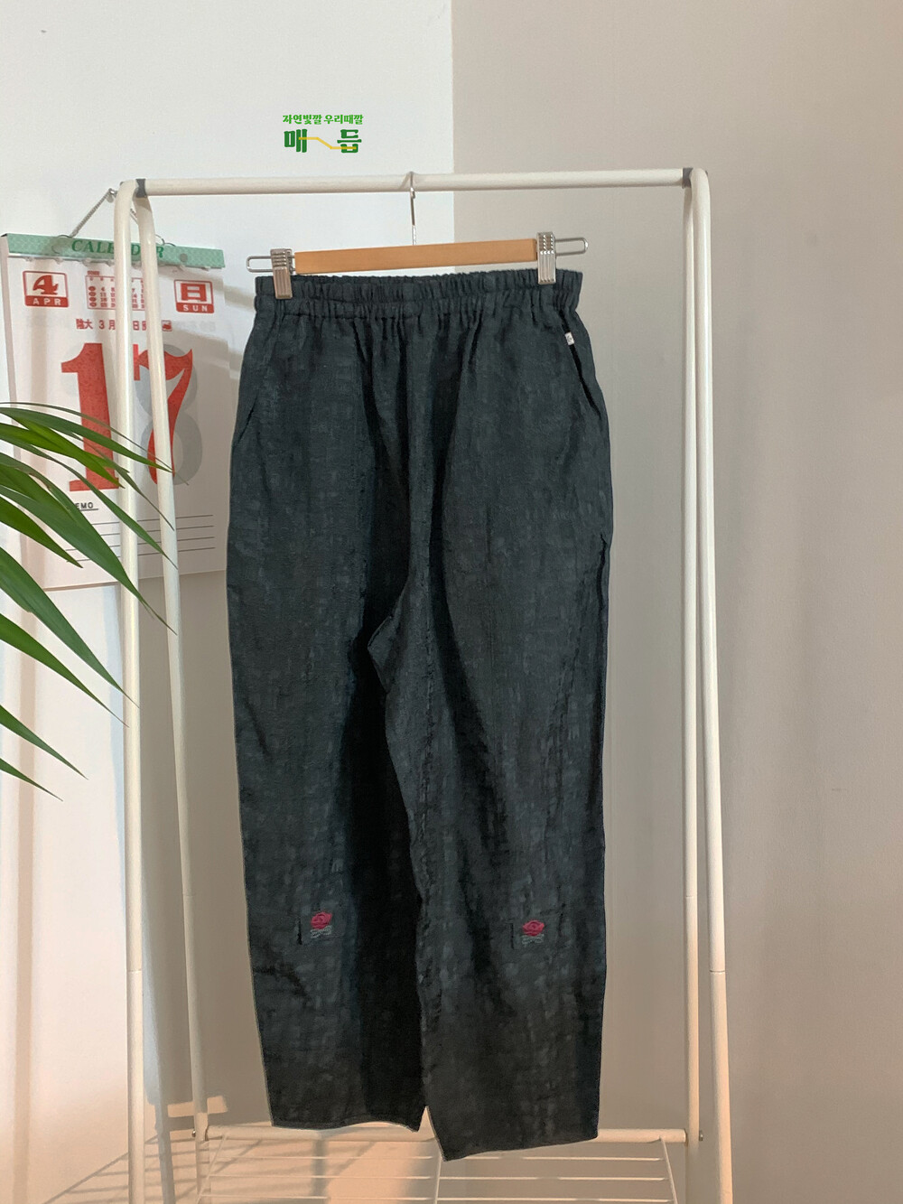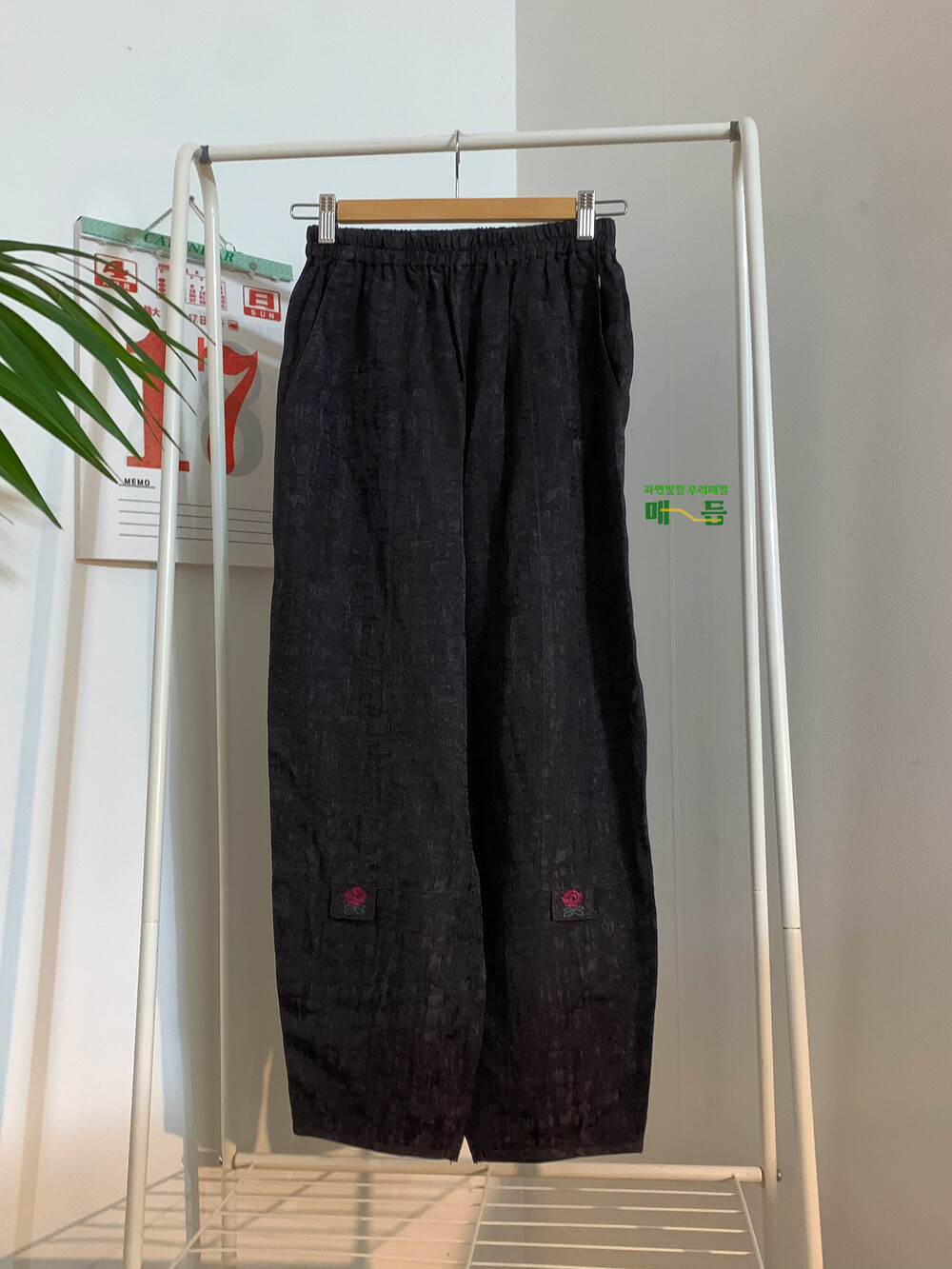 바지 하단의 꽃 자수 포인트!