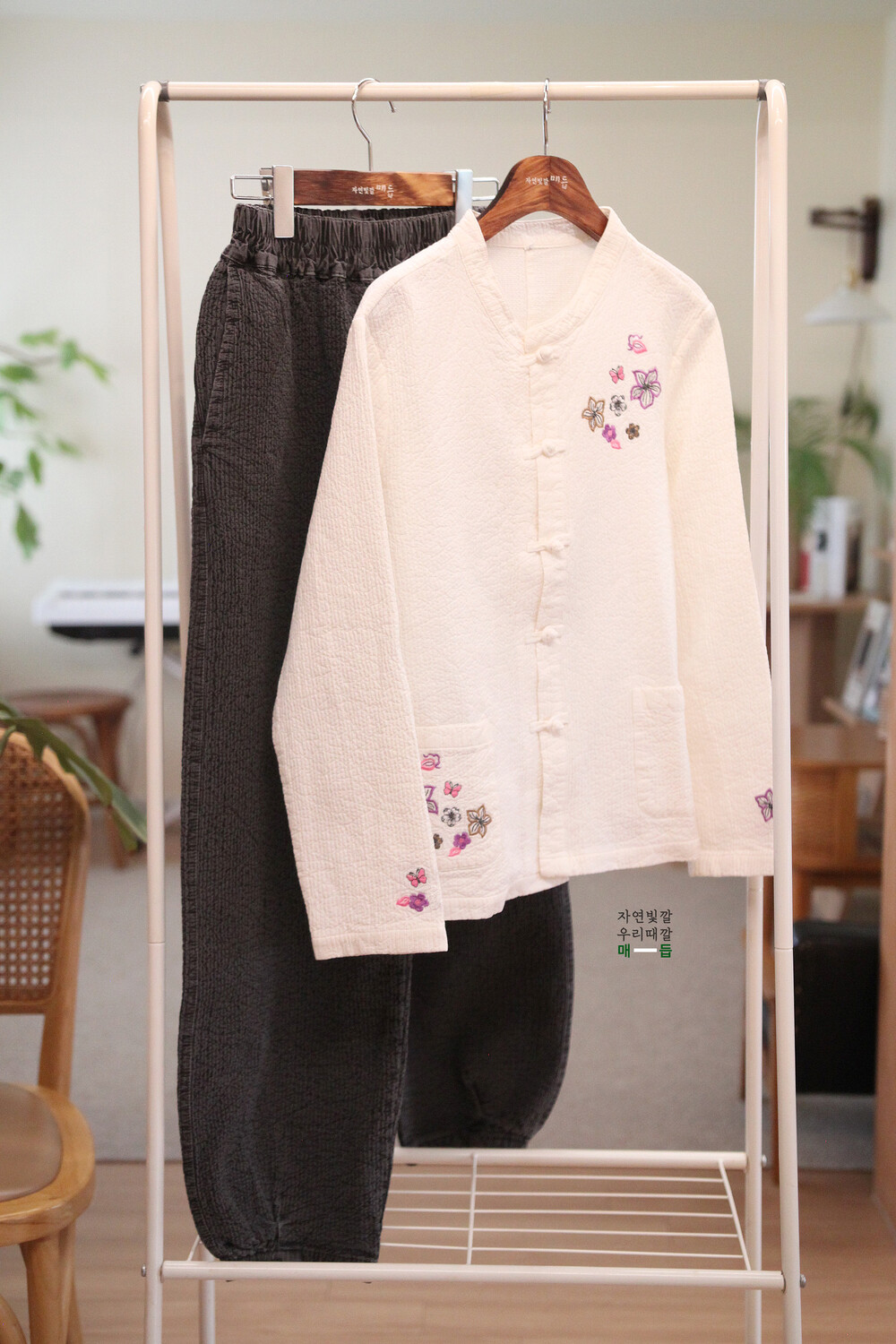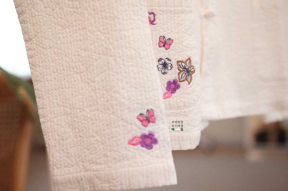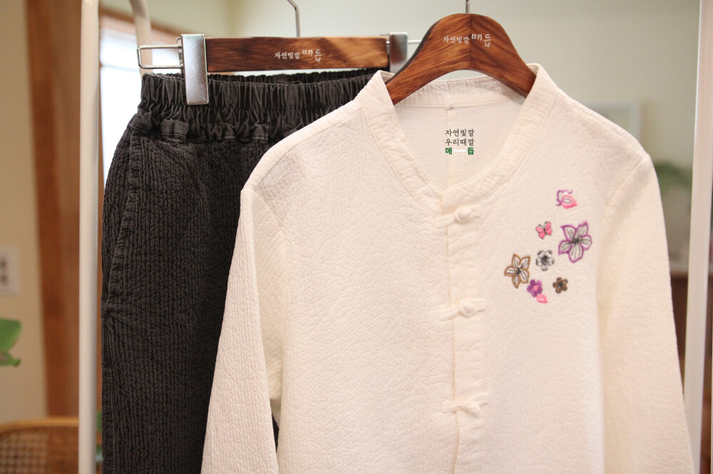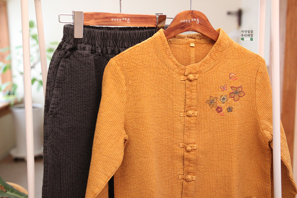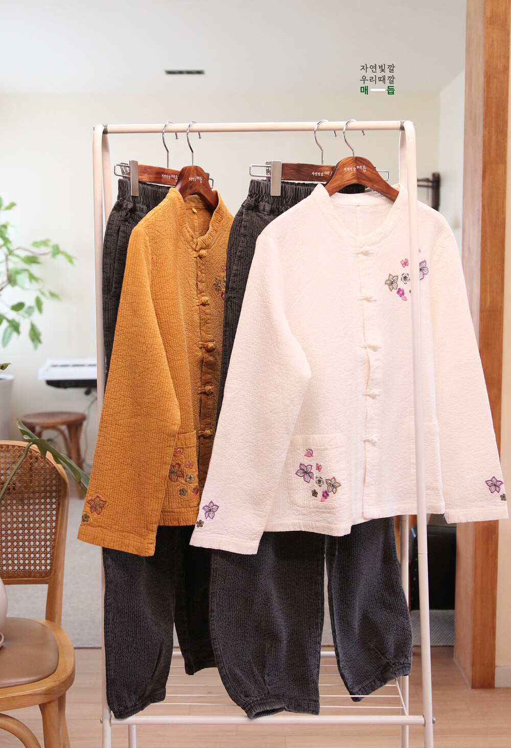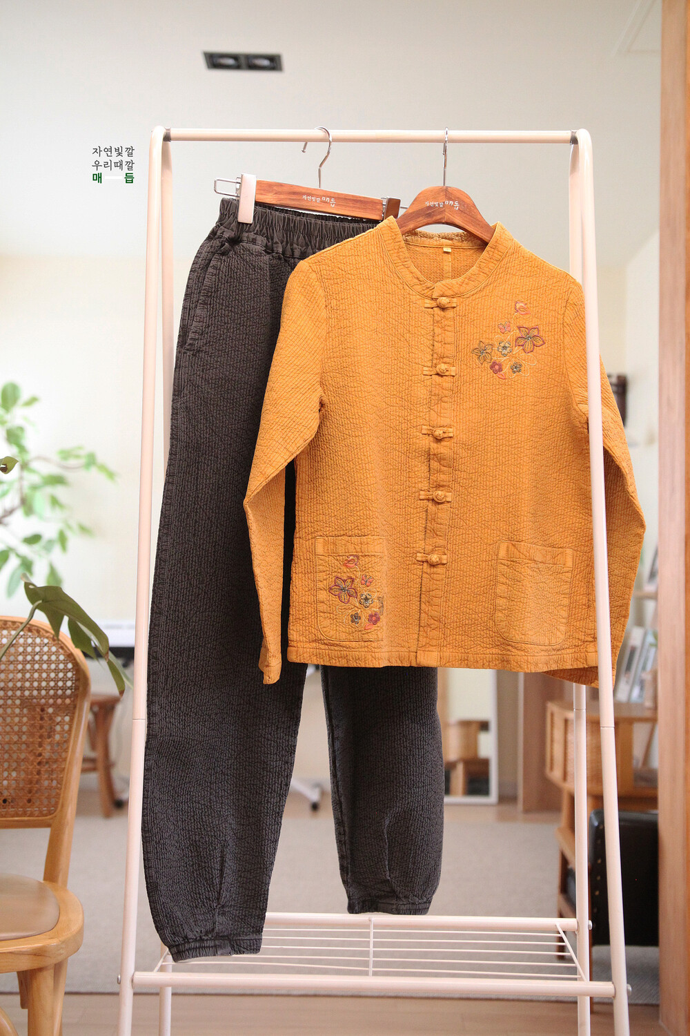 첫 번째는 개나리가 떠오르는 노란색 한벌세트!