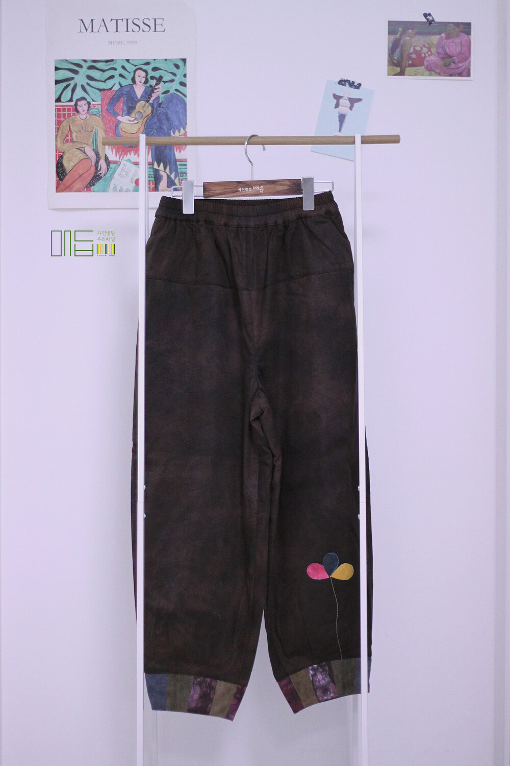 [천연염색] 꽃한송이가 피어난 솜바지