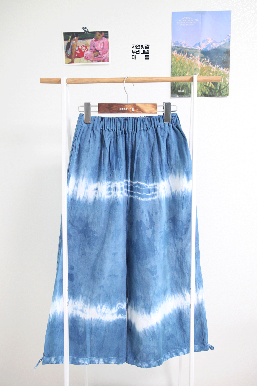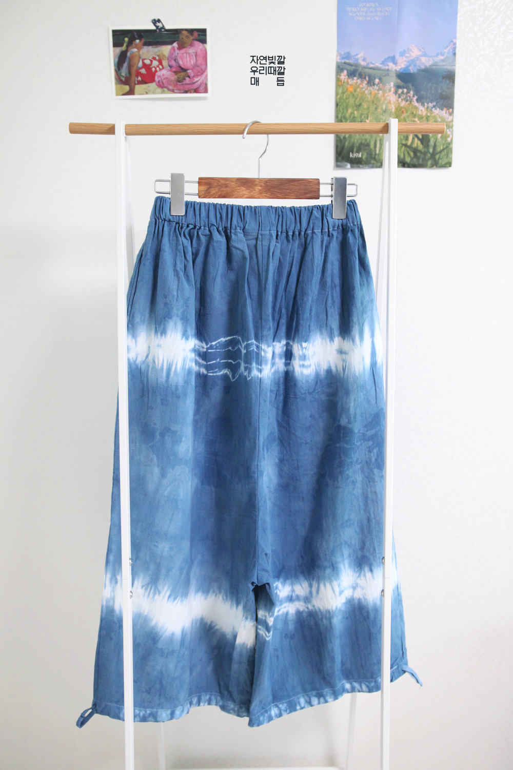 [천연염색] 홀치기 광목 쪽염 바지 (프리 사이즈)
