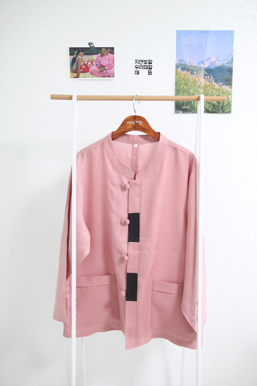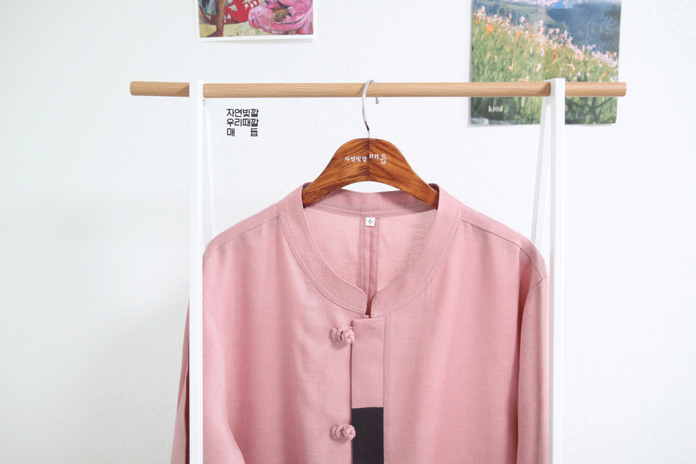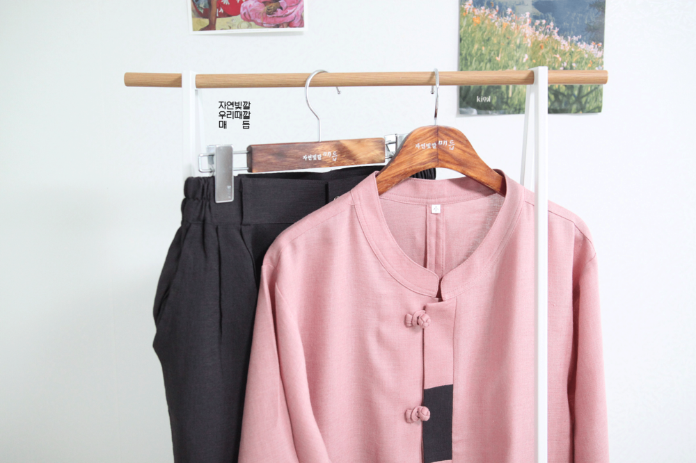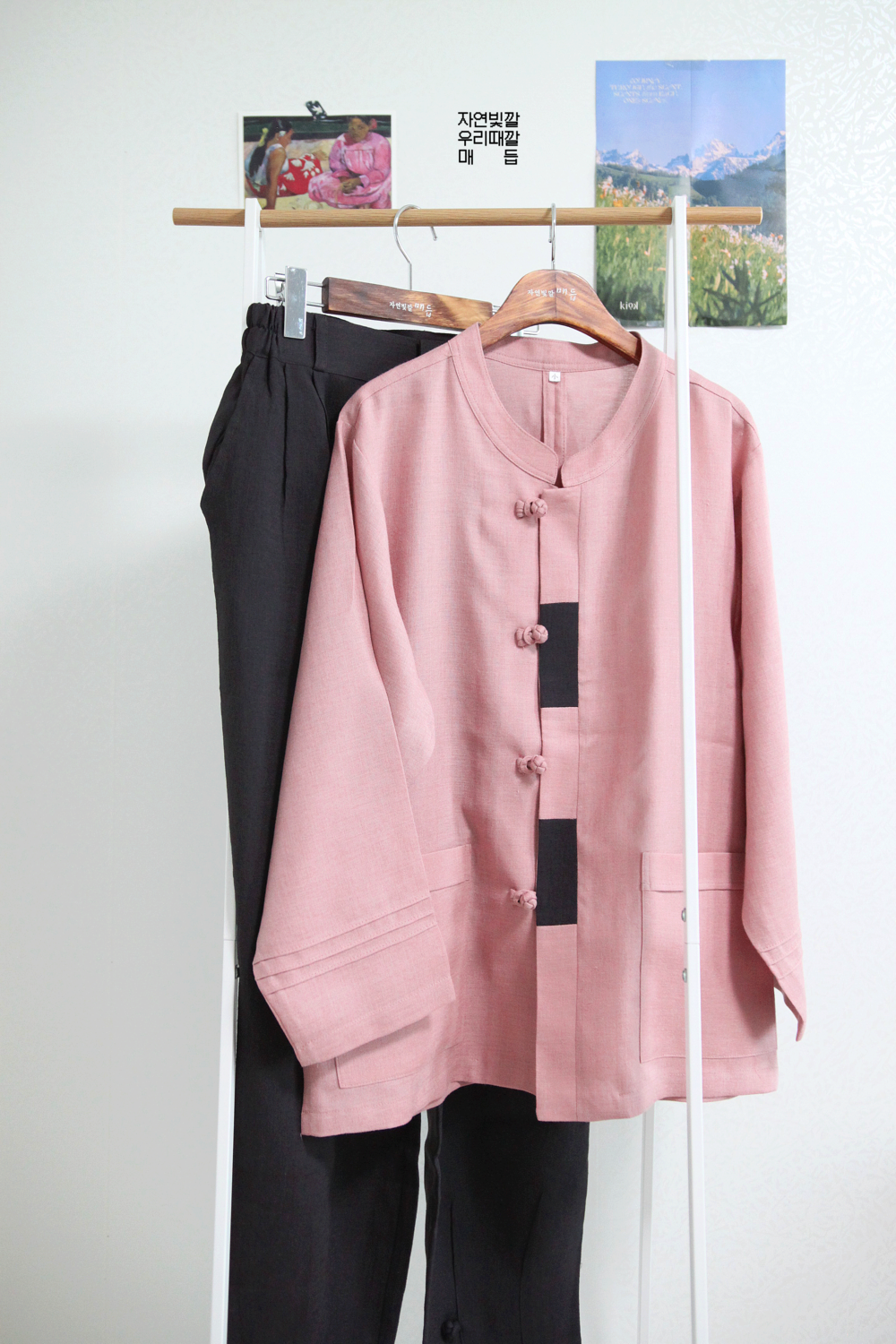 남자 개량한복 생활한복 한벌세트 (분홍/밤색)
