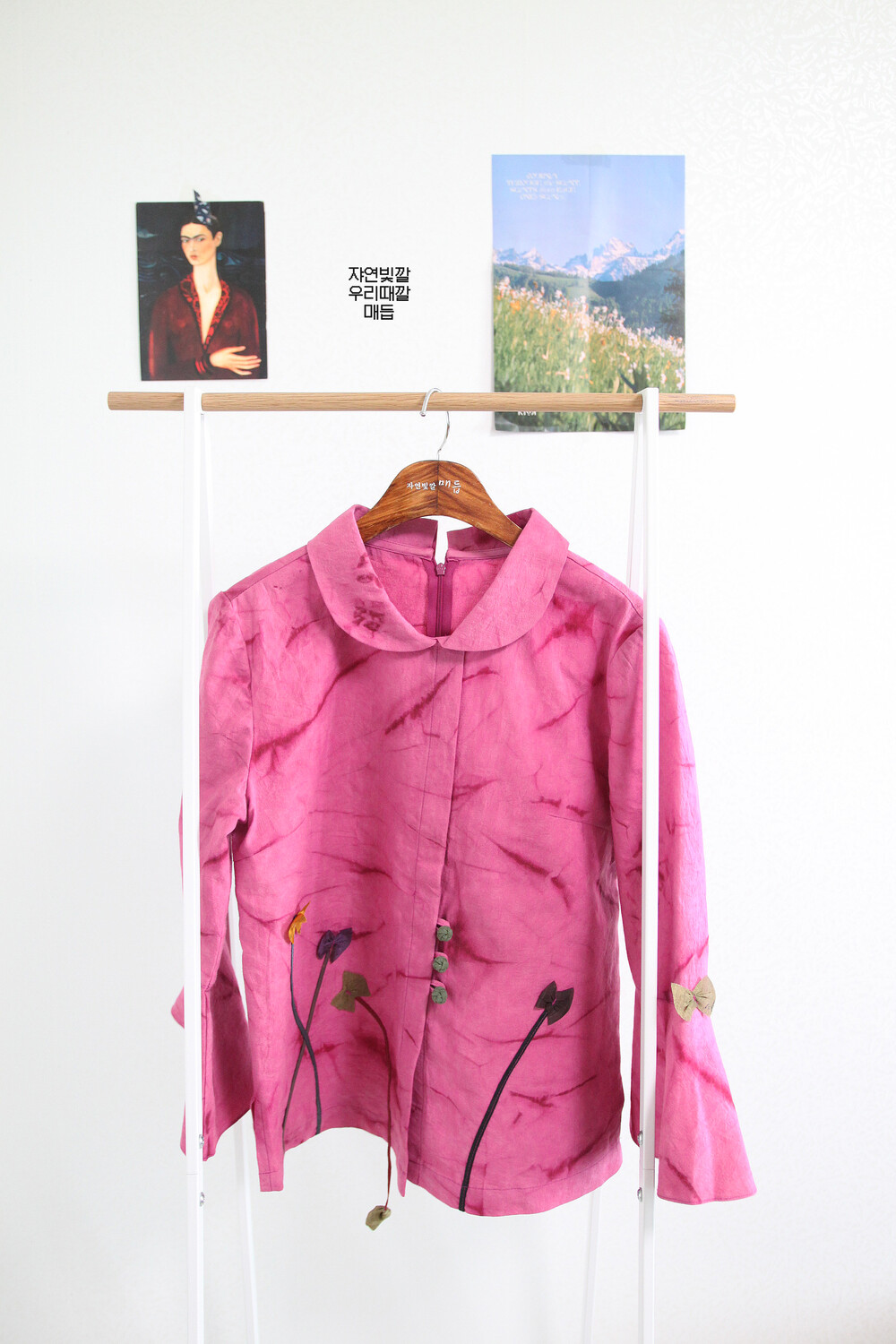 [천연염색] 나비 날아라 면 블라우스 (66~88)