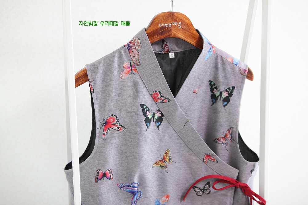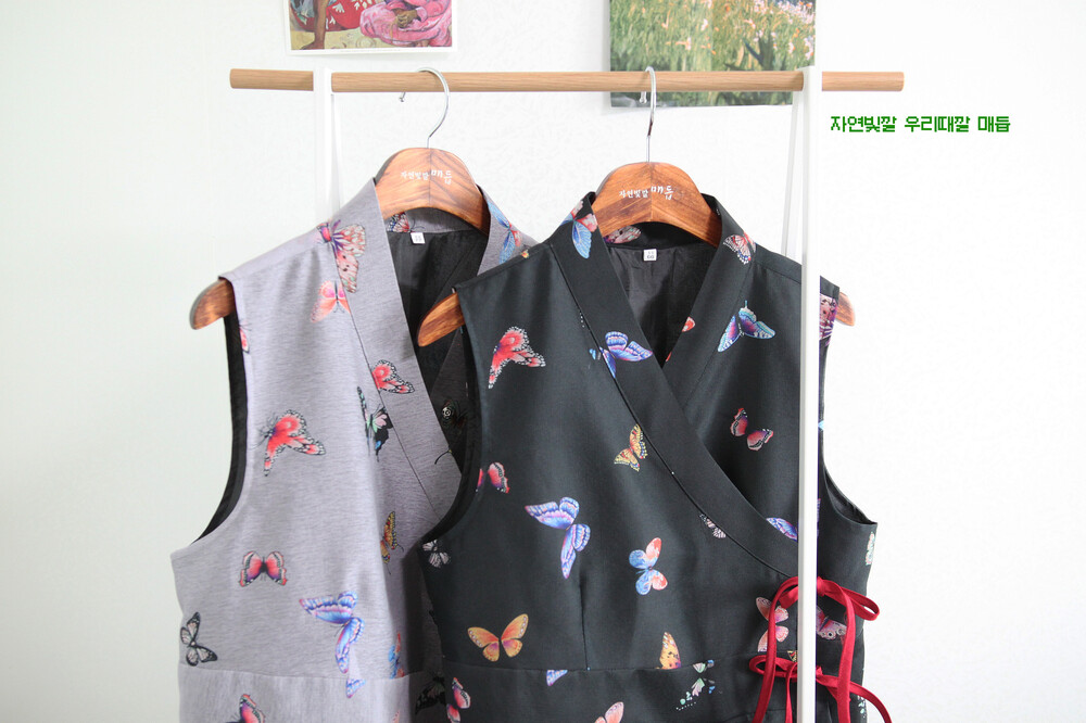 그레이, 블랙 2가지 색상으로 준비한 물모시 민소매 철릭 원피스입니다 :)