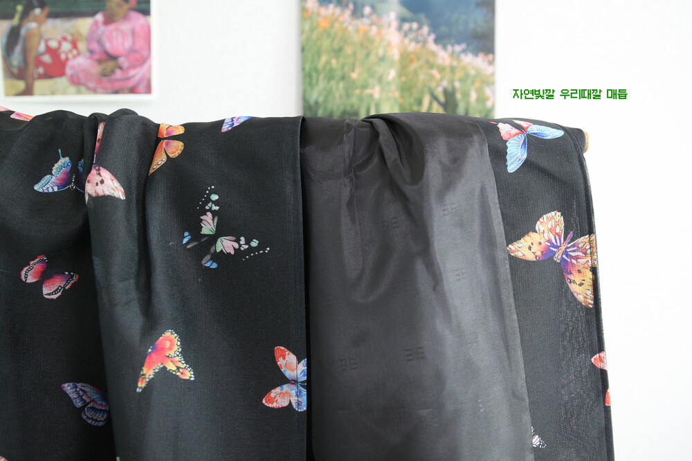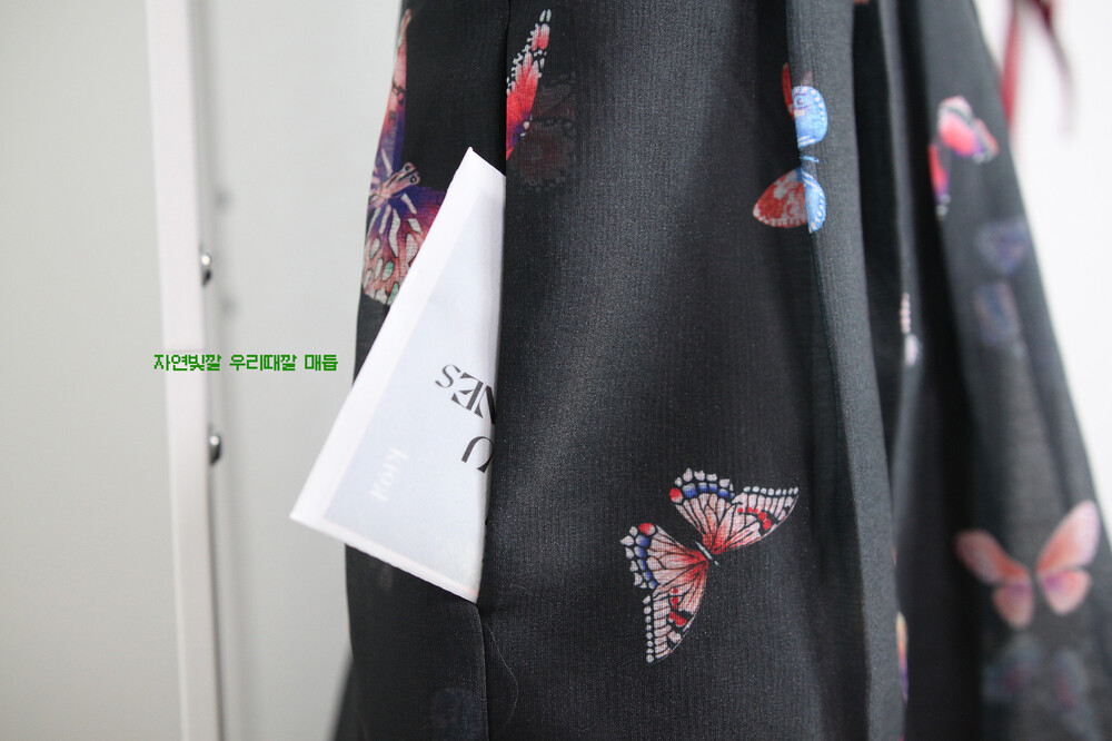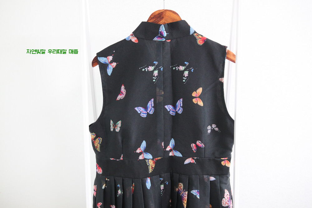 원피스 곳곳을 훨훨 날아다니는 나비가 포인트입니다.
