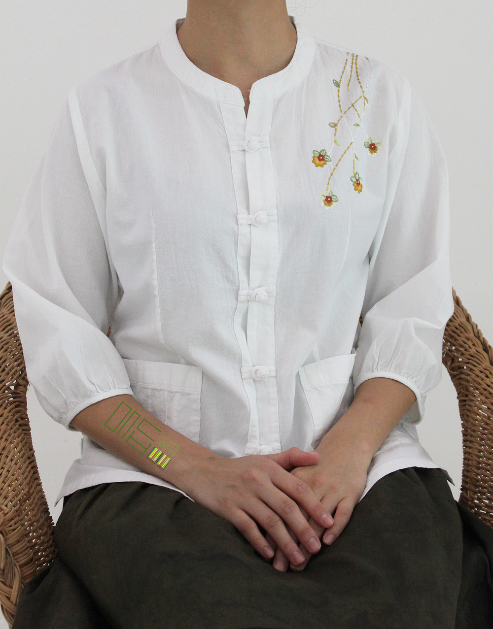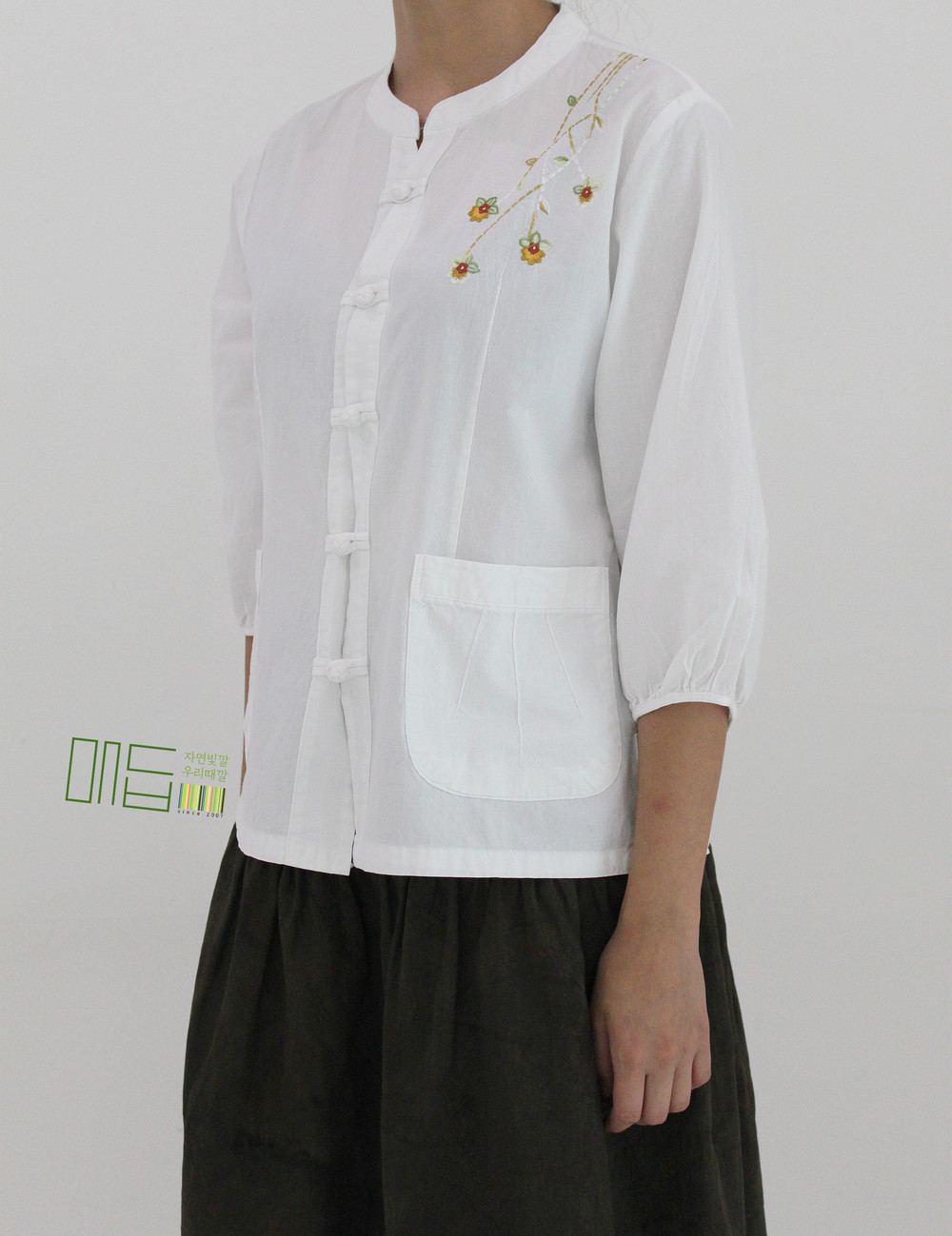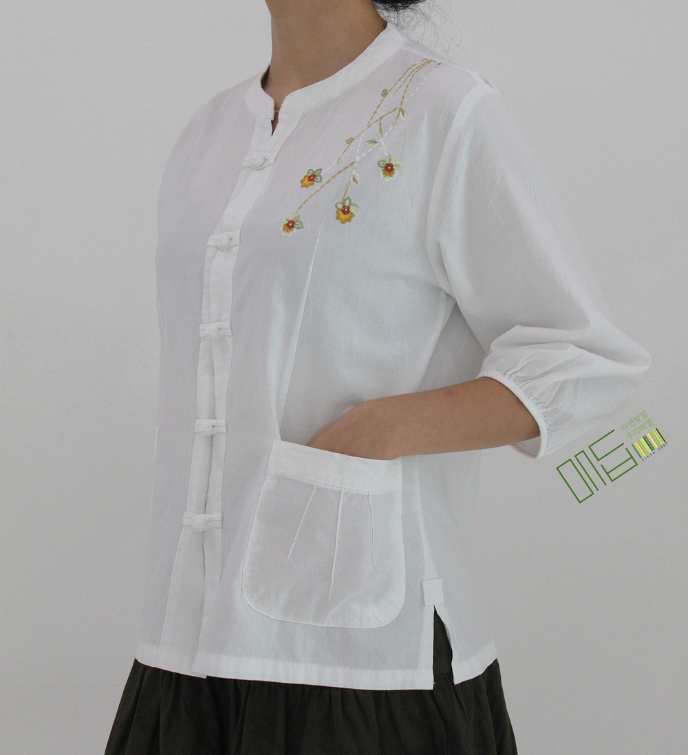 어깨에 핀 꽃 자수 셔츠