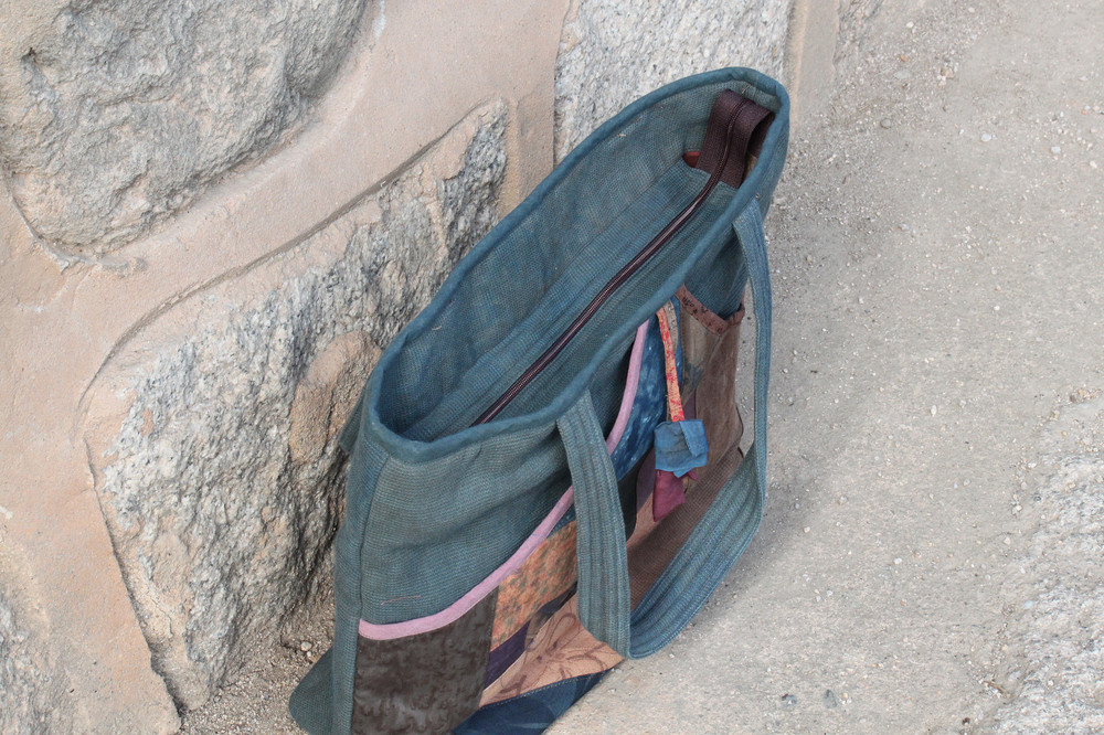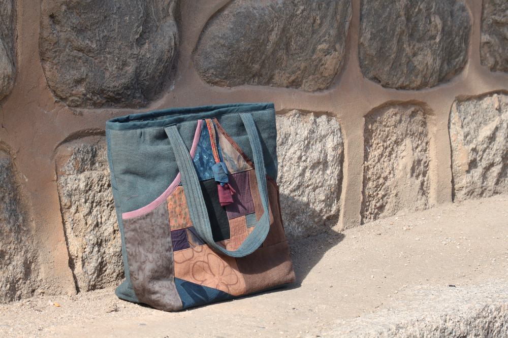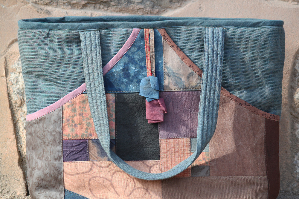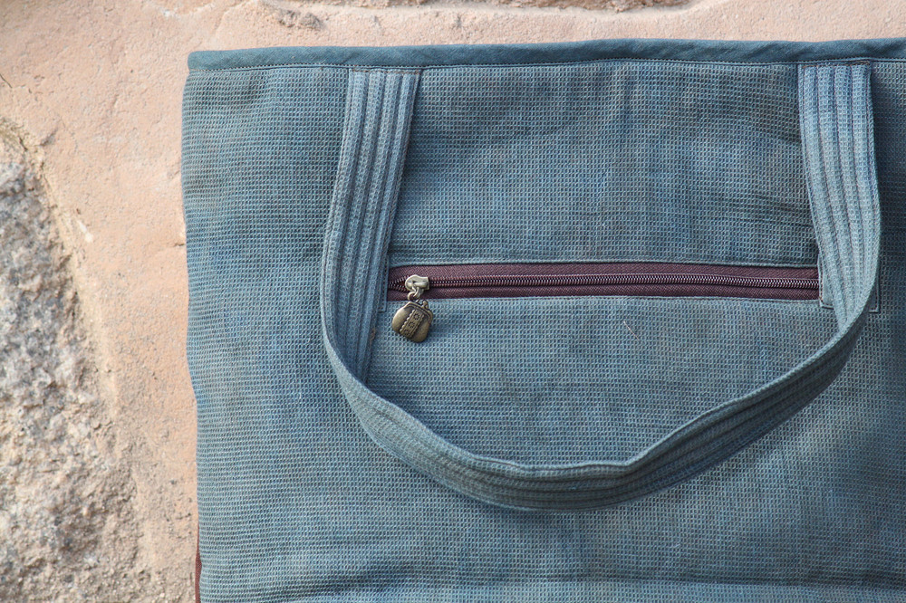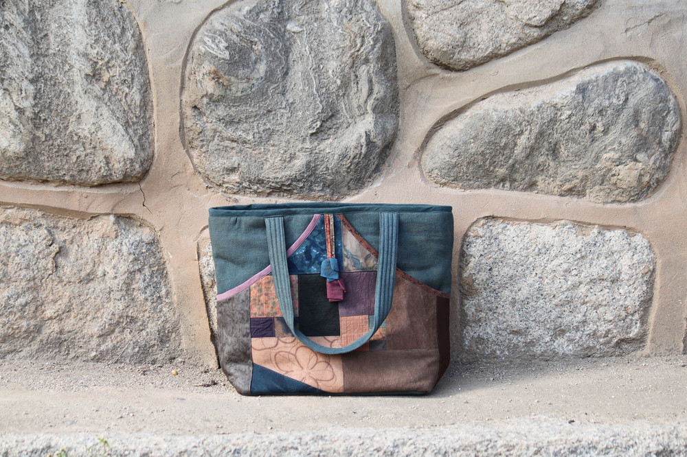 [천연염색] 조각 네모 가방