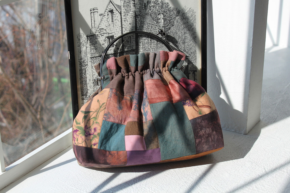 [천연염색] 조각 귀부인 가방