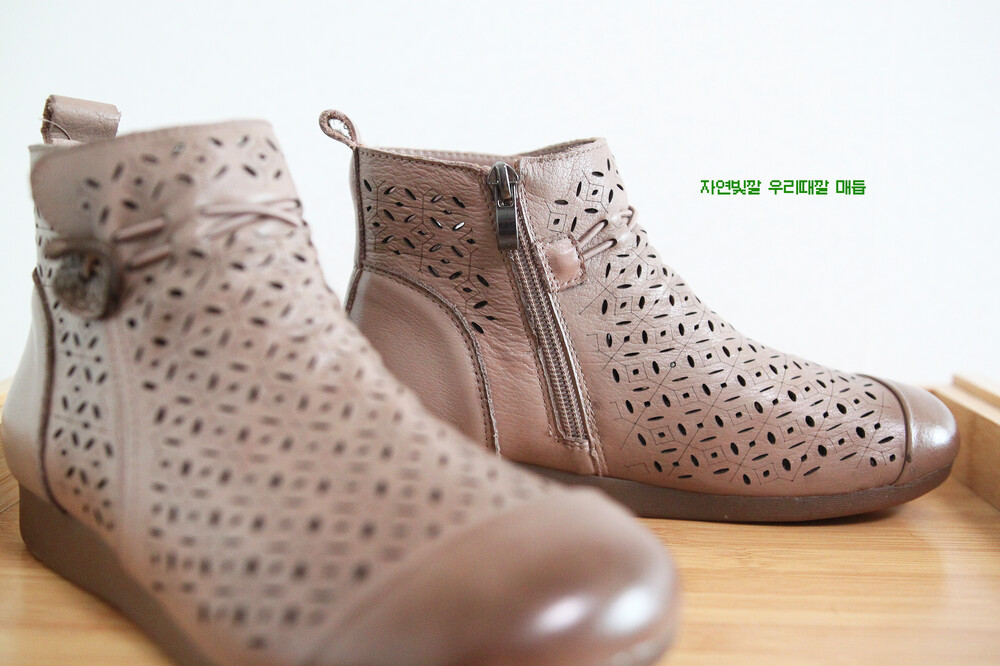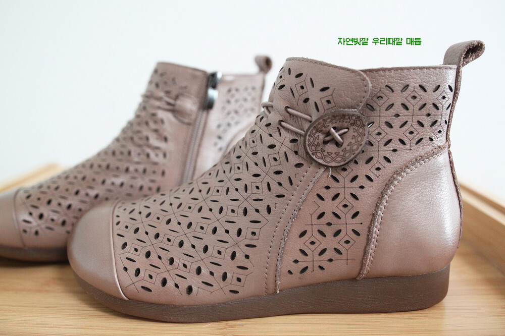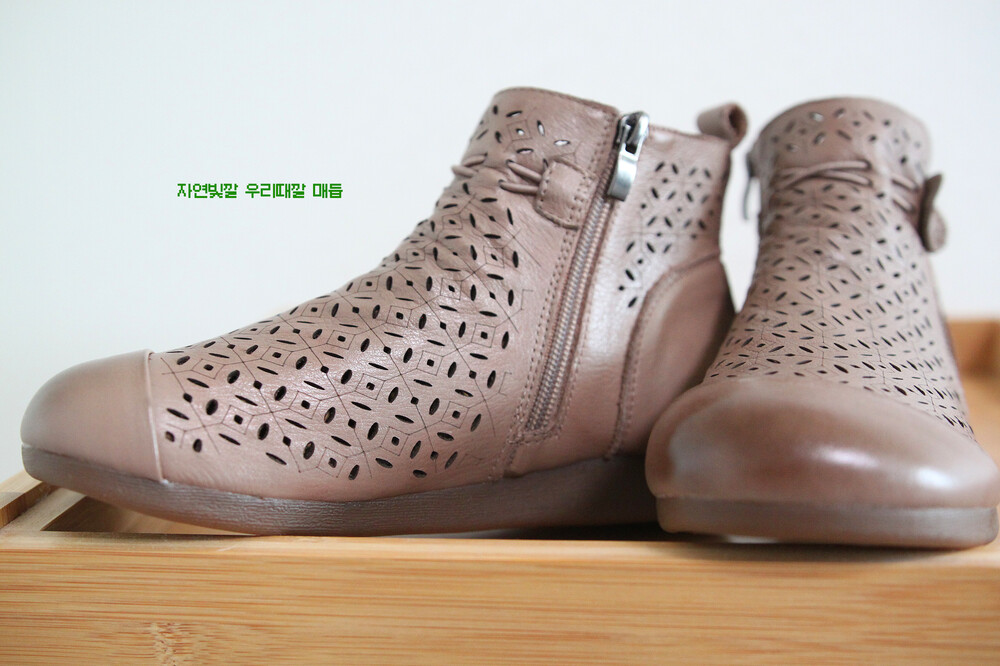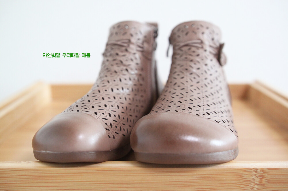 앞코가 둥글게 디자인된 귀여운 가죽 부츠입니다 :)