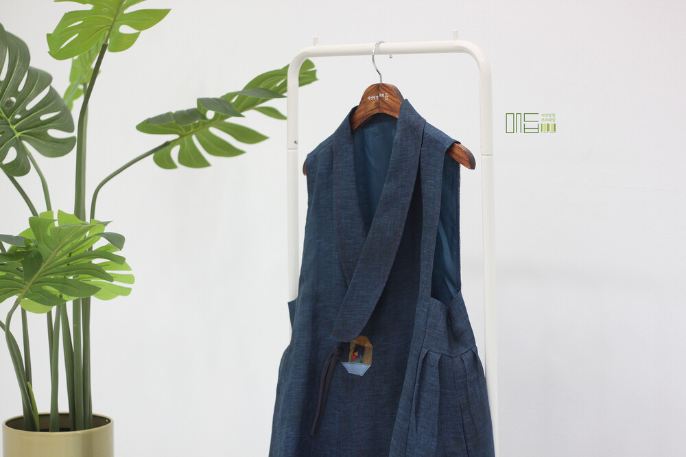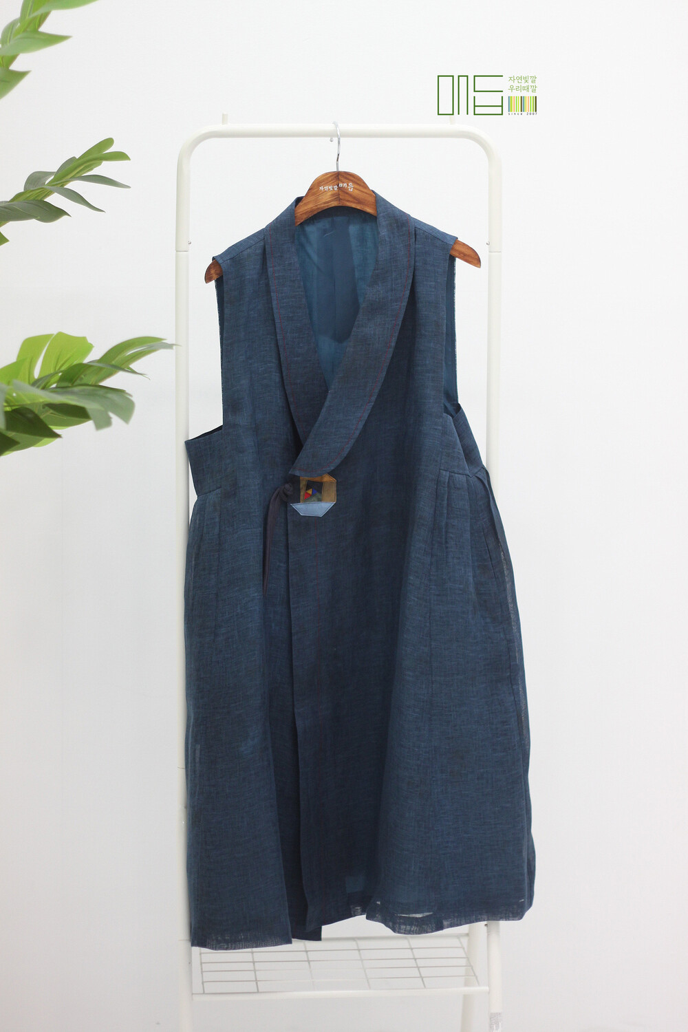 [천연염색] 삼베 카라 쾌자 (55~88)