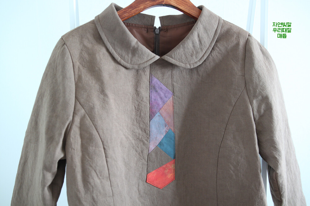감물로 천연염색한 둥근 카라 원피스입니다 :)