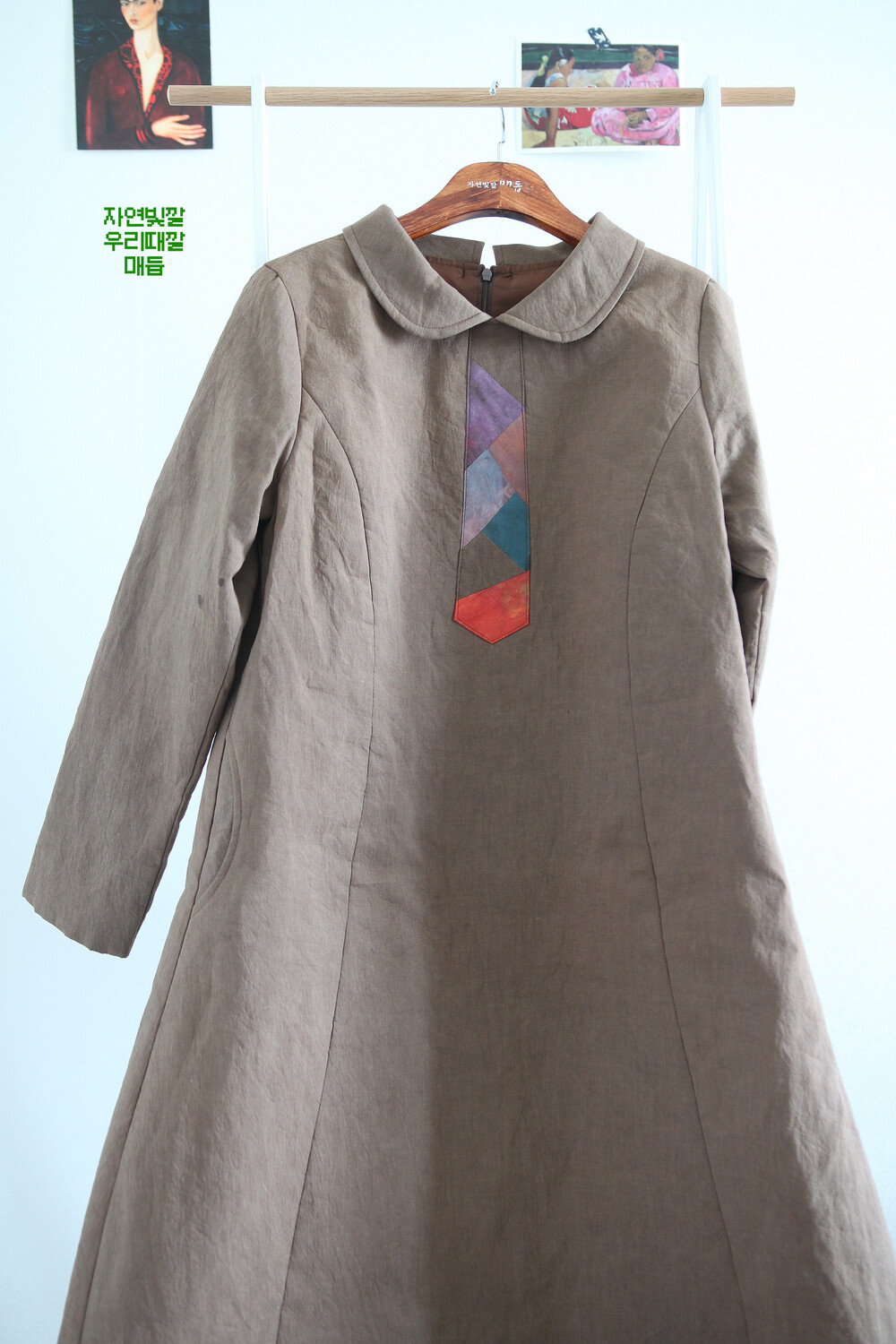 [천연염색] 감물 둥근 카라 솜2온스 원피스 (66~88)