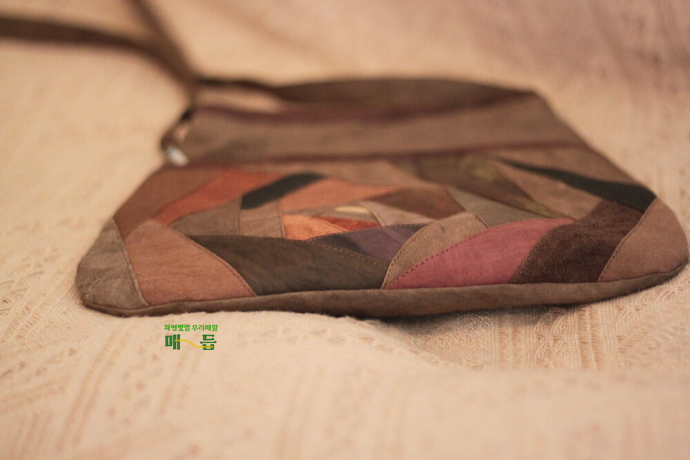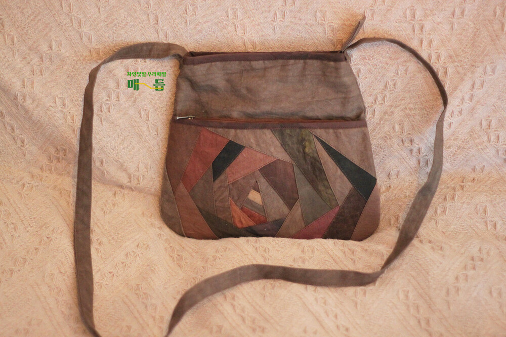 천연염색 감물 회오리 조각 크로스백입니다.