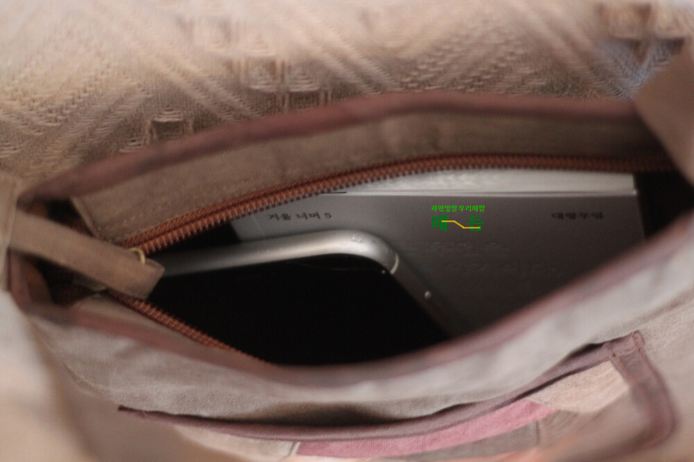 작은 사이즈의 책과 휴대폰이 들어가도 자리가 많이 남아요 :)